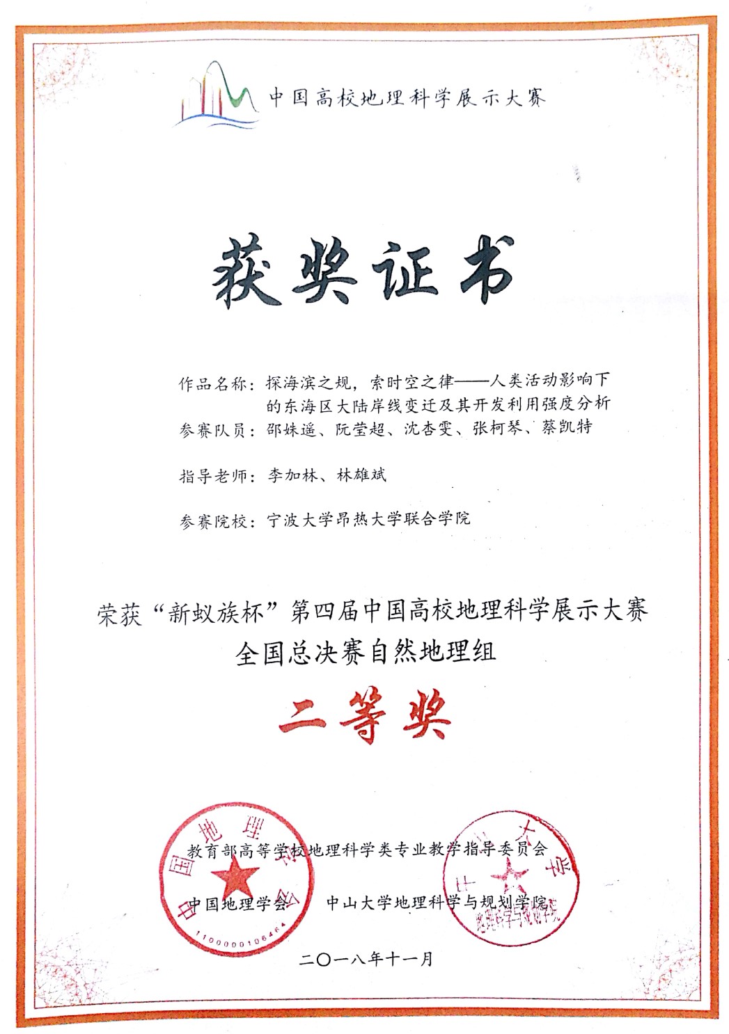 图 1 第四届中国高校地理科学展示大赛全国总决赛二等奖