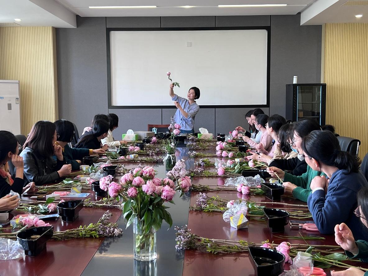 把四月芍药和丁香通过中式花艺美学呈现出来带给热爱美学、热爱生活的教职工和校友们,在广大老师们和校友们的积极参与下,本次活动收到了诸多好评,老师们都通过自己的亲身践行让古典艺术之美回归到生活本初,更收获了中式插花和宋代点茶品茗蕴含的东方哲思和美学精神。