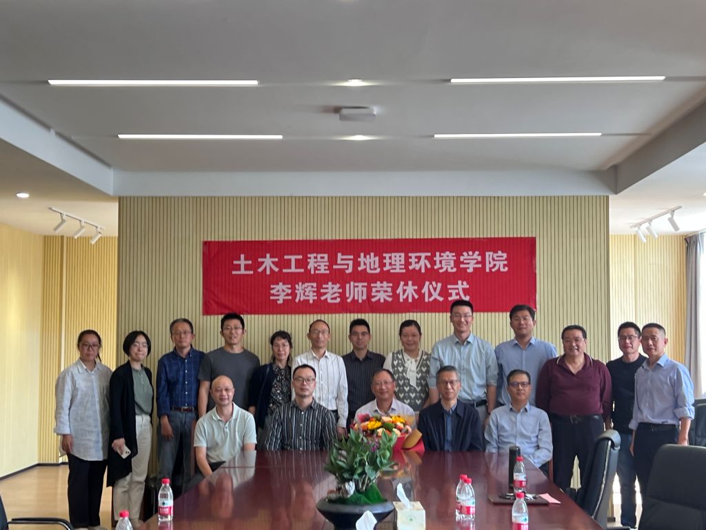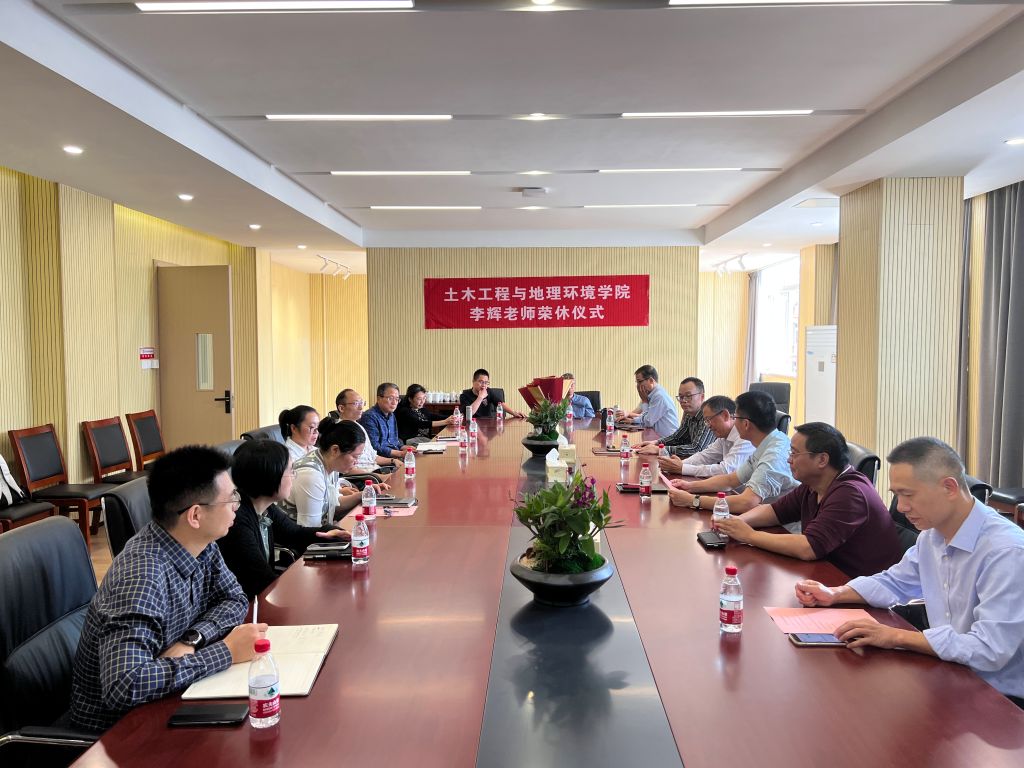 10月30日上午,土木工程与地理环境学院李辉老师荣休仪式在学院408会议室举行,向光荣退休的土木系李辉老师送上深深的祝福和敬意。仪式由学院副院长章子华主持,院党委书记李加林、党委副书记朱剑琼、党委委员严晓东、党委委员贺志敏、党委委员林雄斌、分工会主席叶春阳及土木系教师代表出席仪式。