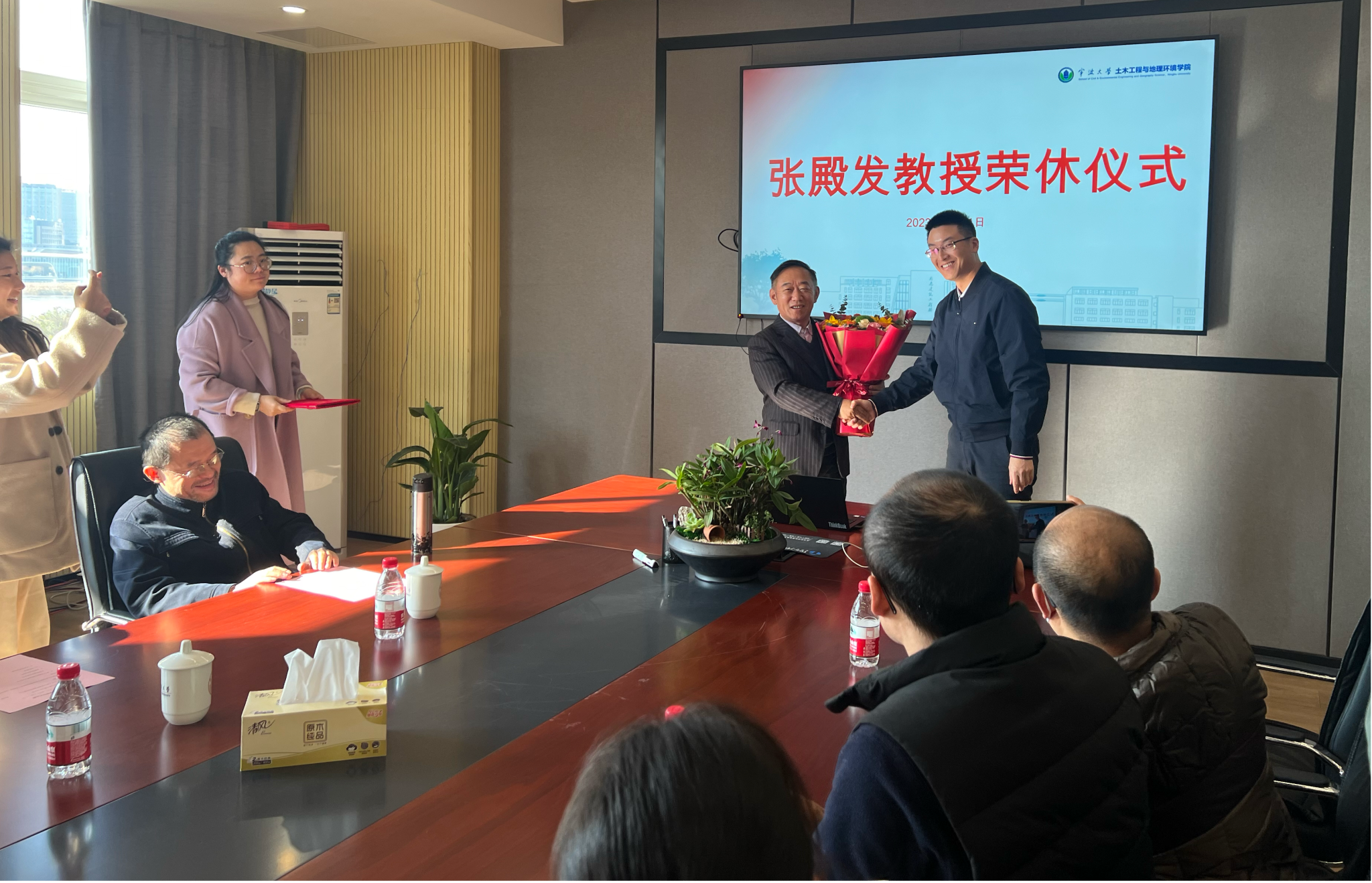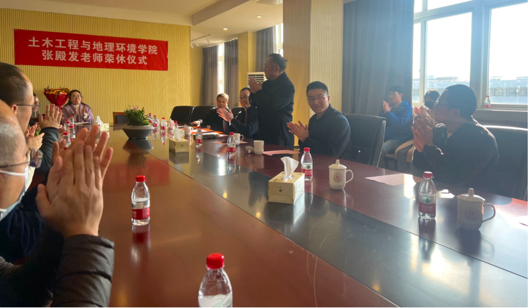 首先,院党委书记李加林介绍张殿发老师的工作简历及为学院作出的贡献,章子华院长为张殿发老师赠送鲜花并送上祝福。随后,乔观民老师作为教师代表,深情回顾了和张殿发老师并肩工作的难忘经历,表达了对张老师的不舍之情。