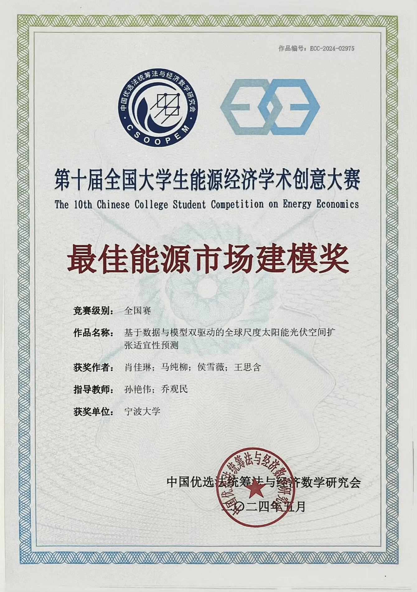 全国大学生能源经济学术创意大赛由中国优选法统筹法与经济数学研究会主办,旨在更好地服务于能源经济领域专业人才的培养,助力我国早日实现碳达峰、碳中和的目标。赛事已被高教会列为全国大学生一级赛事,为大学生的学术创新、才华展示提供了舞台,也为促进多学科交叉解决能源经济和低碳发展中的重点难点问题提供了平台。本次大赛共收到来自561所院校报名,其中提交有效作品8963项,经过校赛和省赛激烈角逐,最终推荐入围国赛作品895项。经过通讯评审和专家会评,共评出148组作品进入总决赛。最终经过现场激烈的陈述和答辩,sm调教 地理与空间信息技术系队伍从众多队伍中脱颖而出,取得最佳能源市场建模奖和国赛一等奖的好成绩。